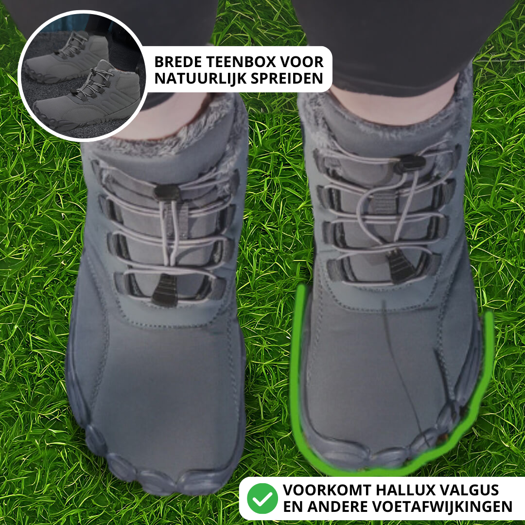 De Glacia Pro™ Barefoot Laarzen zijn gemaakt voor dagelijks gebruik en koude winterdagen. Ze geven je voeten de vrijheid om natuurlijk te bewegen. Tegelijk bieden ze comfort, warmte en bescherming. Orthopedisten raden dit ontwerp aan omdat het een gezonde voethouding ondersteunt en je voetspieren versterkt. Bovendien helpt het om pijn te verlichten, zodat elke stap lichter, vrijer en natuurlijker voelt.