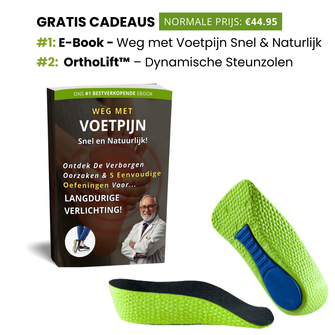Bonus 1: Gratis eBook – Normaal €19,95. Ontvang deskundige tips over voetgezondheid, pijnverlichting en preventie – gratis bij je bestelling.